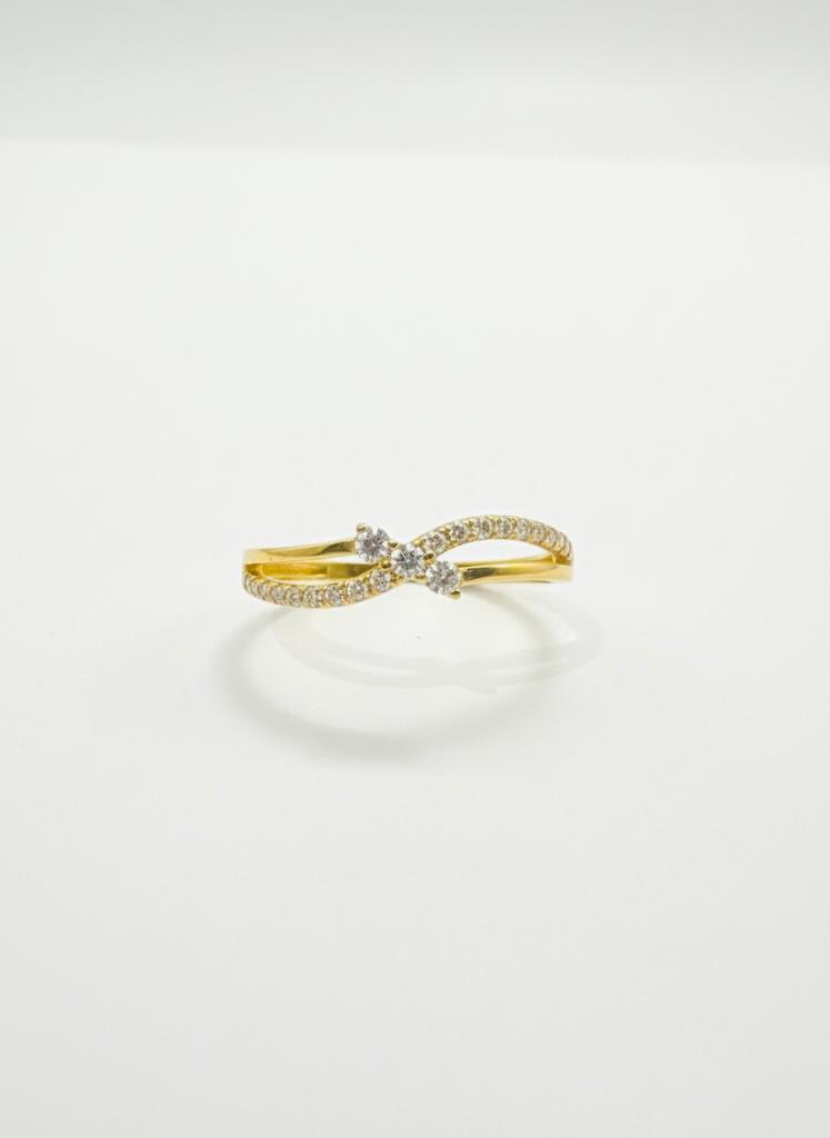 Elevate your hand with the elegant ‘Anjali’ ring, a beautiful 22K Gold Crossover Band. This ring features two flowing bands: one polished, and one meticulously paved with sparkling Cubic Zirconia (CZ) stones. It’s the perfect high-purity gold ring for a stunning, stackable look.