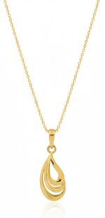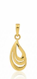 This pendant showcases a visually captivating layered teardrop shape. The design consists of multiple, smooth, and highly polished lines of gold that curve and overlap, creating a sense of fluid motion—like a drop of water or a curling wave. The open spaces between the layers add a light, airy quality to the piece, preventing it from feeling heavy despite its substantial look. The entire surface is given a mirror-like high polish, maximizing the brilliance of the 22K gold. The simple, streamlined bail at the top complements the modern aesthetic.