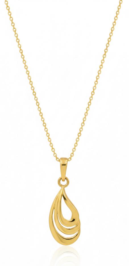 An exceptionally elegant 22 Karat Yellow Gold Pendant featuring a dynamic fluid teardrop design with graceful openwork layers. Its sleek, modern form and luxurious high-purity gold make it the perfect statement piece for everyday sophistication or a stylish gift.
