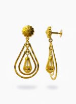 Short Description / Meta Description (Max 160 characters): Elegant 22 Carat Gold Jhumki style drop earrings. Features a delicate leaf stud, conical filigree drop, and tiered base. Lightweight, traditional 916 gold for daily or ethnic wear.