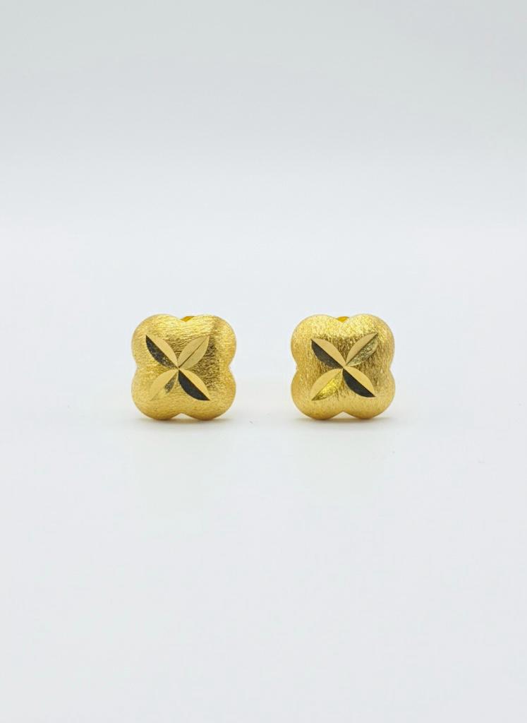 Make a contemporary statement with this striking four-leaf clover gold stud earring. This piece is crafted from fine yellow gold (e.g., 22K or 18K) and offers a beautiful interplay of textures.