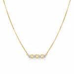 A contemporary yellow gold necklace featuring a horizontal bar of interlocking Mariner (or Anchor) links, with each link beautifully set with sparkling round diamonds in a subtle, yet striking display.
