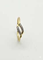 A captivating [Metal, e.g., Gold] diamond twist ring featuring a brilliant solitaire securely set, cradled by pave-set split shanks. A uniquely romantic and symbolic design for engagement.