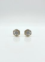 Hexagon Diamond Flower Stud Earrings in Two-Tone Gold