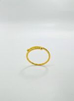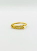 - Open Bypass Design: The ring is crafted in bright yellow gold and features a fluid, open-ended design where the two ends of the band elegantly overlap or bypass each other at the top. This style may allow for minor size adjustments, enhancing its appeal as a versatile piece.