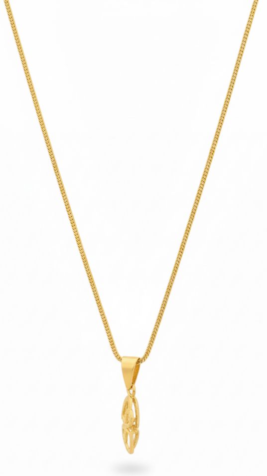 Discover the ‘Akshara’, a striking 22K Gold pendant featuring an elegant initial or stylized scroll motif with beautiful diamond-cut texture. This piece of high-purity gold jewelry offers a perfect blend of modern sparkle and traditional quality, ideal for personalized gifting or everyday wear.