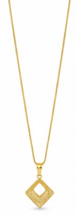 The ‘Jali’ Kite Pendant is a magnificent display of traditional gold craftsmanship. It is expertly created from rich 22-karat gold, known globally for its brilliant yellow hue and high investment value. The design features a striking diamond or kite shape with an open center, framed by incredibly delicate filigree or ‘jali’ (lattice) work. This meticulous open-work technique makes the pendant feel substantial yet incredibly light and airy.