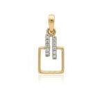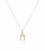 A chic, two-tone [Metal, e.g., Gold] pendant featuring a polished open rectangular frame with two vertical diamond-pave bars floating inside.